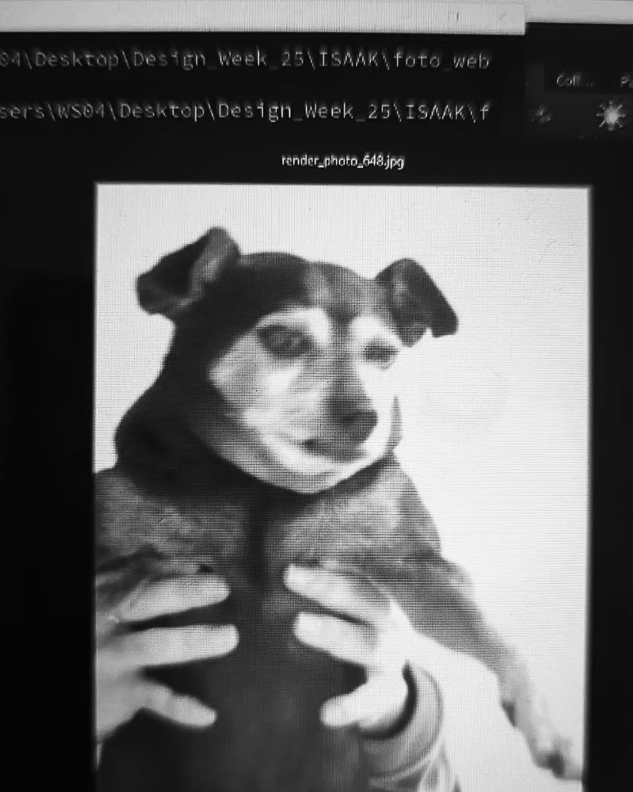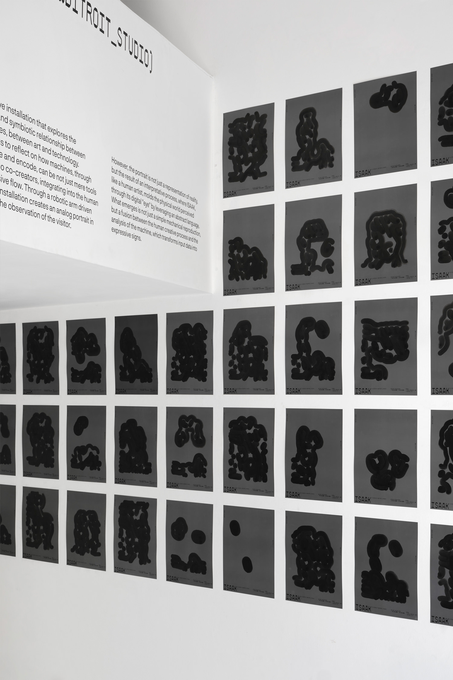 Through an algorithm-driven robotic arm, the installation produces an analog portrait of each participant in real time. Yet the drawing is not a straightforward depiction of reality: it is the outcome of an interpretative process. Like a human artist, ISAAK reshapes what the camera perceives, employing an abstract visual language. The result is not a simple technical copy but a fusion of human creativity and machine analysis, transforming raw data into expressive marks.
